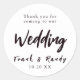 Moderno, simples e minimalista Obrigado por vir ao nosso adesivo de casamento, sobre um fundo branco personalizável com tipografia negra. Inclui nomes de recém-casados e data do casamento. Parabéns no seu casamento!