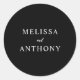 Personalize facilmente seus adesivos de convite para casamento com este design editável. Apresenta design de tipografia mínima em preto e branco.
