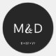 Adesivo Redondo Casamento Negro Mínimo Monograma de Script Flair M