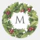 Adesivo Redondo Casamento no inverno Holly Berries Wreath Monogram