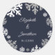 Adesivo Redondo Casamento no inverno marinho Azul Flocos de Neve