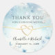 Obrigado azul moderno, elegante e empoeirado, casamento no inverno que você cola para favores, com corações de ouro e flocos de neve.