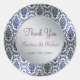 Adesivo Redondo Casamento Obrigado damasco azul escuro e prata