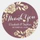 Adesivo Redondo Casamento Obrigado Ouros Modernos Rosas Borgonha V