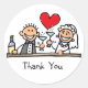 Vestidos de casamento com uma noiva e noiva bonitinha dizendo Obrigado! Personalize com seu próprio texto, se desejar.