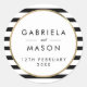 Com um clássico fundo de faixa preto e branco, estes autocolantes de casamento elegantes apresentam uma moldura de folha de ouro falsa elegante emoldurando seus nomes e data especial definidos em tipografia chic. Projetado por Thisisnotme©