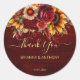 Adesivo Redondo Casamento outono burguns rosas girassóis obrigado
