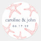 Adesivo Redondo Casamento Personalizado de Starfish Coral e Marinh