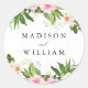 Elegante, adesivos florais de casamento com os seus nomes cercados por pulverizações florais de flores cor-de-rosa, pincel e cor de pêssego com folhas verdes. Os adesivos florais cor-de-rosa são perfeitos para serem usados como selos de envelopes, favoritos para festas, etc. Projetado para coordenar com a nossa coleção de casamento Floral Suave Rosa.