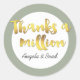 Um obrigado redondo personalizado que você cola com fonte moderna de script em uma cor falsa de folha de ouro. Insira seus nomes no lugar do texto de exemplo mostrado na modelo de design. Este adesivo é uma boa escolha para favores de casamento ou outras ocasiões para expressar suas obrigados. (Observe que esta é uma imagem impressa digitalmente de alta qualidade e não uma folha de ouro real.)