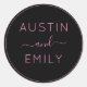 Adesivo Redondo Casamento Preto Cor-de-Rosa Personalizado