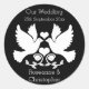 Vinheta de casamentos com uma design de pomba que você pode personalizar com qualquer texto de sua escolha. Se precisar de ajuda para personalizar, entre em contato conosco através do link de solicitação nesta página. Design de adesivo de casamento por justbyjulie