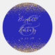 Adesivo Redondo Casamento Real Azul Dourado Script Glitter