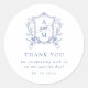 Adesivo Redondo Casamento Real Blue Vintage Crest Obrigado