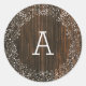 Um elegante adesivo de casamento rústico com ilustração do hálito do bebê sobre um fundo inspirado em madeira de galinha. Personalize com seu monograma.
