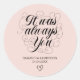 Casamento Romântico Favor Clássico Foi Sempre Você Introduzindo a inscrição romântica "Sempre foi você", uma inscrição caligráfica surpreendentemente bonita, especificamente projetada para aquele dia especial de amor — uma fonte manuscrita e moderna design minimalista com a frase, "Sempre foi você" com preto e rosecominação. Altere facilmente os nomes e a data no adesivo e edite clicando em 'clicar para personalizar mais.'