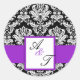 Adesivo Redondo Casamento Roxo Monograma Damask Seal