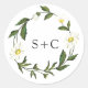 Um adesivo de casamento floral elegante com um esquema simples que apresenta o seu dentro monograma de uma coroa pintada com margaridas brancas. Este adesivo de casamento moderno com flores margaridas é excelente de favores de casamento ou de selos de envelope.