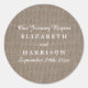 Estes adesivos são perfeitos para qualquer casal planejando um casamento romântico por país. O design apresenta um fundo de efeito de burlap rustic com uma redação branca elegante. O design simples pode ser personalizado para se adequar ao seu evento especial e será o adesivo perfeito para qualquer festa temática rústica, incluindo chás de panela, noivados, chás de casamento, festas de aniversário e muito mais.