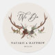 Adesivo Redondo casamento rústico de botânica floral personalizada