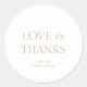 Este adorável e simples obrigado de casamento branco que você cola apresenta um texto de Amor e Obrigados em um ouro contemporâneo e nomes de casais.