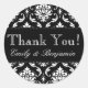 Adesivo Redondo Casamento tema damasco Branco Negro Obrigado Stick