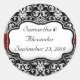 Adesivo Redondo Casamento tema damasco de Fita Preta/Branca/Vermel