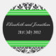 Vinheta casamento tema damasco verde e preto que pode ser usada como selo de convite.