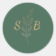 Adesivo Redondo Casamento Verde Simples Monograma Moderno Elegante