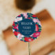 Adesivo Redondo Casamento Vermelho Colorido Floral Obrigado Azul