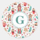 Adesivo Redondo Casas de Monograma & Padrão de Doces 1,5 pol