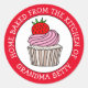 Cupcake branco de desenho animado fofo com cobertura rosa e morango em cima. Adesivos de bolos personalizados.