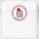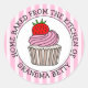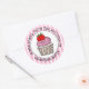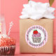 Desenho animado fofo de um cupcake branco com cobertura rosa e morango em cima. Adesivos de bolos personalizados.