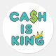 A expressão "Cash Is King" ilustrada com o símbolo do dólar e a coroa adicionada às palavras. Para as pessoas que preferem dinheiro ou acreditam que o seu dinheiro é mais bem detido por elas do que pelos bancos. Dinheiro em mãos é melhor que cheques, promessas ou IOUs. Pagar dinheiro, receber dinheiro - dinheiro é rei!