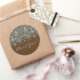 Adesivo Redondo Castanho e Turquesa Azul Damasco Obrigado Stick