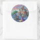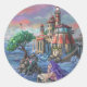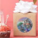 Se você ama as sereias, então esta pintura é para você. O Castelo de Sereia pintado por Traci Van Wagoner apresenta uma sereia com cabelo roxo na frente e uma sereia com cabelo verde se soltando em ilhas rock enquanto outra sereia com natações de cabelo cor-de-rosa no oceano diante de um castelo com um céu roxo, laranja e amarelo por trás. Esta bela e caprichosa arte da fantasia faz um presente de excelente e uma decoração espantosa para o seu escritório ou casa.