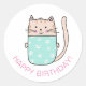 Adesivo Redondo Cat Kitten Feliz Aniversário