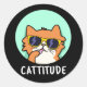 Adesivo Redondo Cattitude Engraçada Cat Pun Dark BG