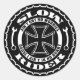 Berço redondo emblema, "Cavaleiro Lento - Não tenho preocupações, porque não estou com pressa", texto com chaves e Cruz Maltesa. Gráfico B/W, em t-shirts, camisas de suor, novidades, presentes.