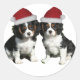 Dois cachorros do Cavaleiro do Tricolor Rei Charles Spaniel vestindo chapéus de Santa.