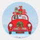 Adesivo Redondo Cavalier King Dog Em Carro Com Papai Noel