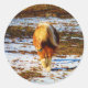 Adesivo Redondo Cavalo marrom e minúsculo creme na neve.
