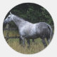 Adesivo Redondo Cavalo puro-sangue em pé de cerca