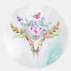 Adesivo Redondo Caveira Animal Boho com Borboletas e Flores