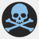 Um crânio simples e ossos cruzados em uma doce sombra de azul.