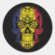 Adesivo Redondo Caveira Da Romênia E Bandeira Rosa
