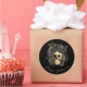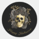 Adesivo Redondo Caveira Gótica Rosas Pretas e Douradas Halloween