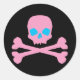 Adesivo Redondo Caveira Rosa e Ossos