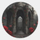 Adesivo Redondo Cemitério gótico Gazebo com Rosas vermelhas à noit