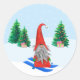 Adesivo Redondo Cena Gnomo de Natal do Esqui Whimsical